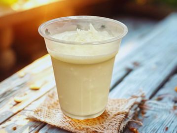 Coconut Milk base, Mango, Pineapple ribbons, Toasted Coconut