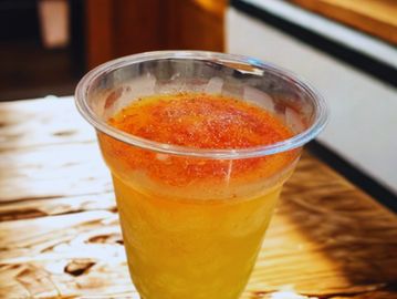Sweet Mango with Chamoy ribbon and Tajin sprinkle